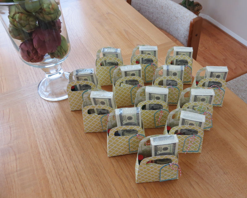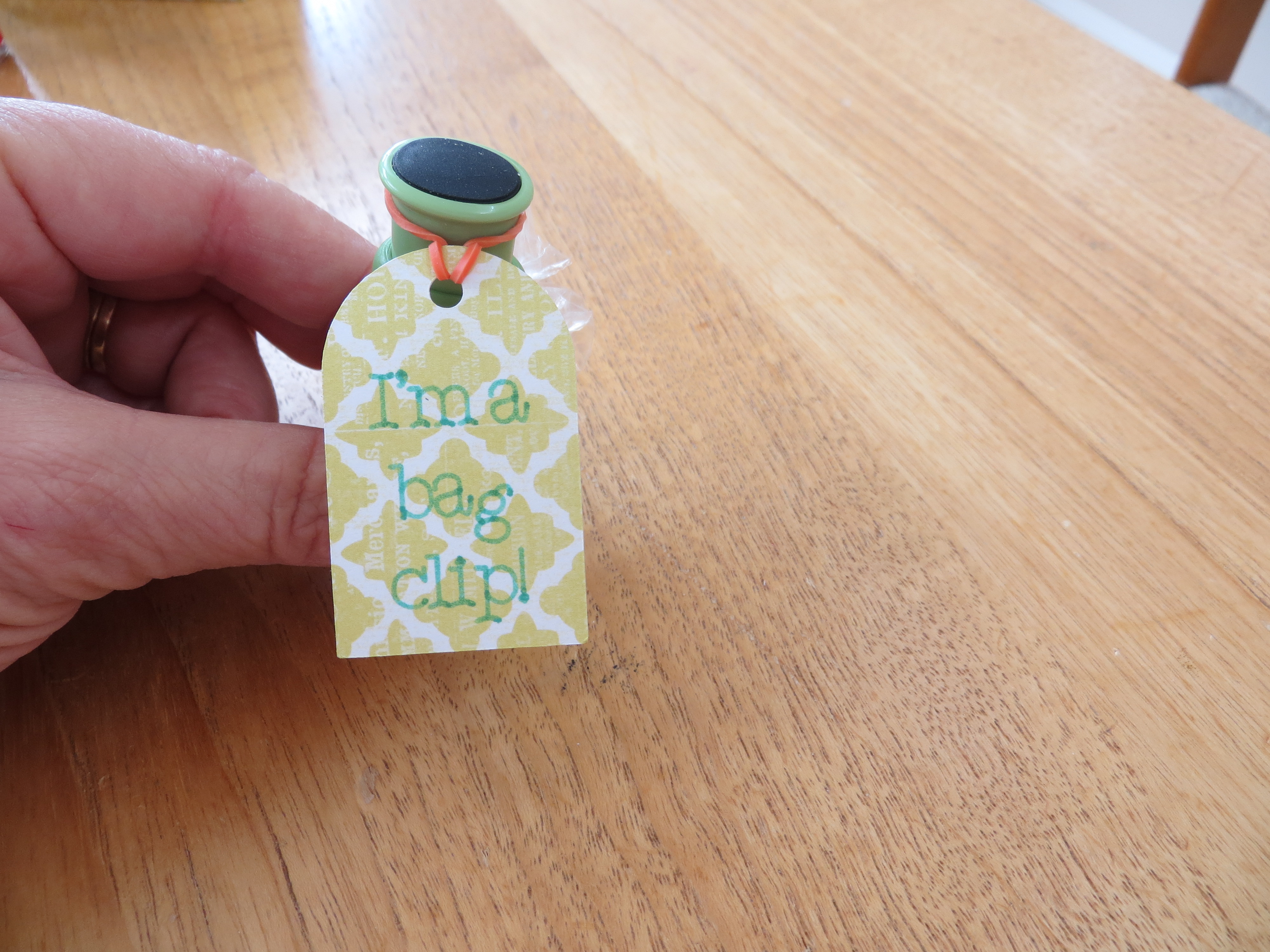 Here are this year’s favors. I made the favor boxes & tags with my Cricut, using CTMH cardstock. Included was one of my favorite bag tags from OXO. I wasn’t sure if everyone would know what they were, so I sliced some plastic bags & clipped them into the clip, along with a tag, “I’m a bag clip!”