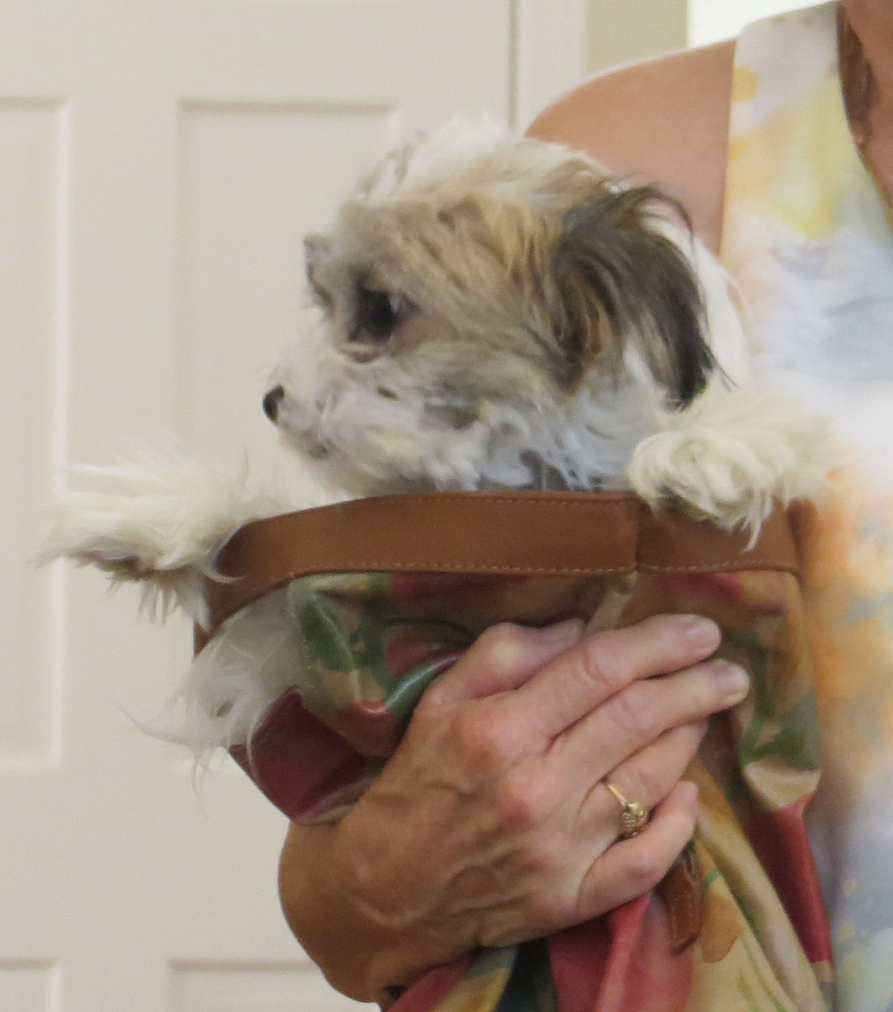 Miss Mia’s debut. She is a shihtzu mix we adopted a month before from Pee Wee’s Pals rescue, after the loss of Miss Roxie in December 2014.