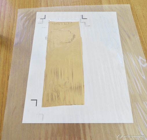 Here is the foil over the laser printed sheet, ready to run through the Minc.